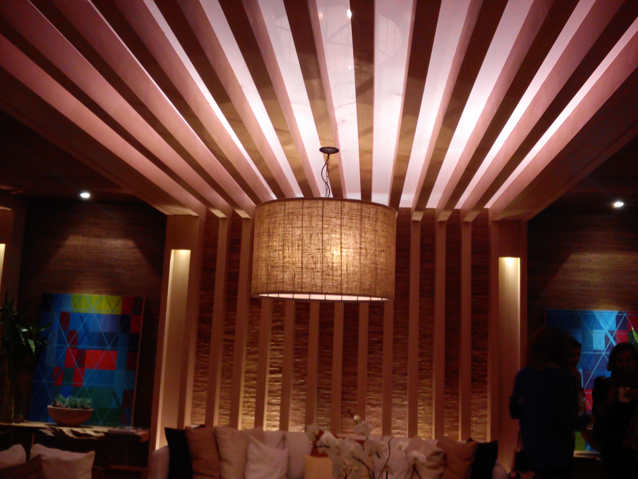 Com design arrojado, o pergolado reveste parede e teto, criando efeito especial pela iluminação difusa e desperta novas sensações.