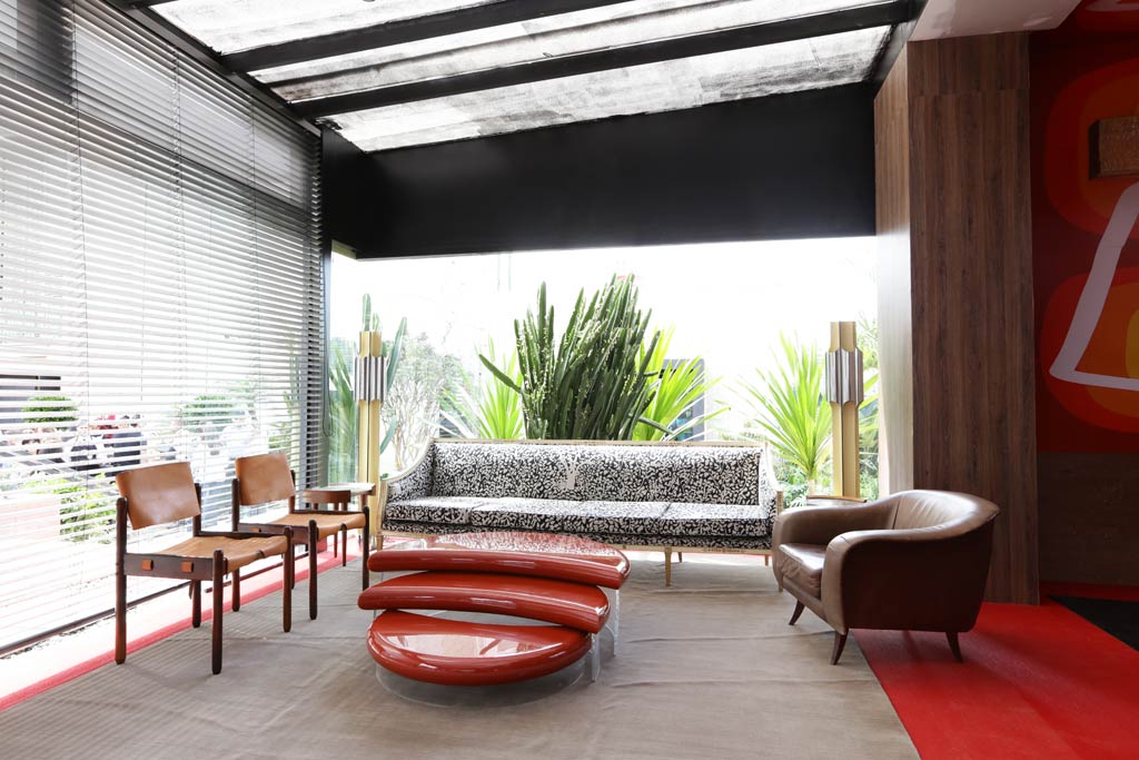 O espaço tem ambientação retrô, em cores quentes e estampas que remetem aos anos 70, móveis de renomados designers brasileiros, como Sérgio Rodrigues, Zanine e Joaquim Tenreiro. Também chamado Bar Central, por estar no centro de uma praça do Jockey Clube, localização estratégica, que promove o encontro de pessoas.