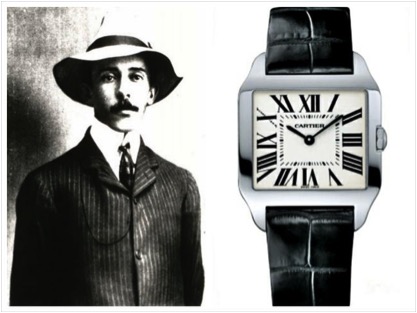 Em 1904, dois anos antes de construir o 14-Bis, ele reclamou para um de seus melhores amigos, o francês Louis Cartier, que estava cansado da falta de praticidade do relógio de bolso. Como passava grande parte do tempo dirigindo máquinas voadoras, ele precisava ver as horas sem a necessidade de utilizar uma das mãos. Meses depois, Cartier o presenteou com o protótipo de um dos primeiros relógios de pulso masculinos do mundo, que recebeu o nome de Santos.