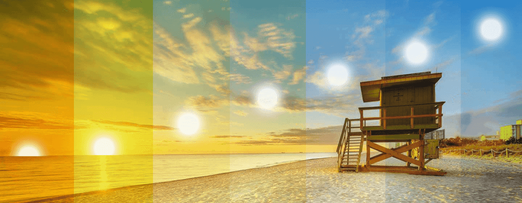 Vale observar uma característica para aplicação e uso destas cores em relação à posição do sol durante o dia, onde a luz branca, por ser mais aproximada à luz do sol no nascer do dia até o meio dia, está ligada ao período de maior produtividade, maior dinamismo físico e mental, enquanto que ao entardecer, as cores mais amareladas do pôr do sol nos remetem ao conforto de nossas casas e ao relaxamento.