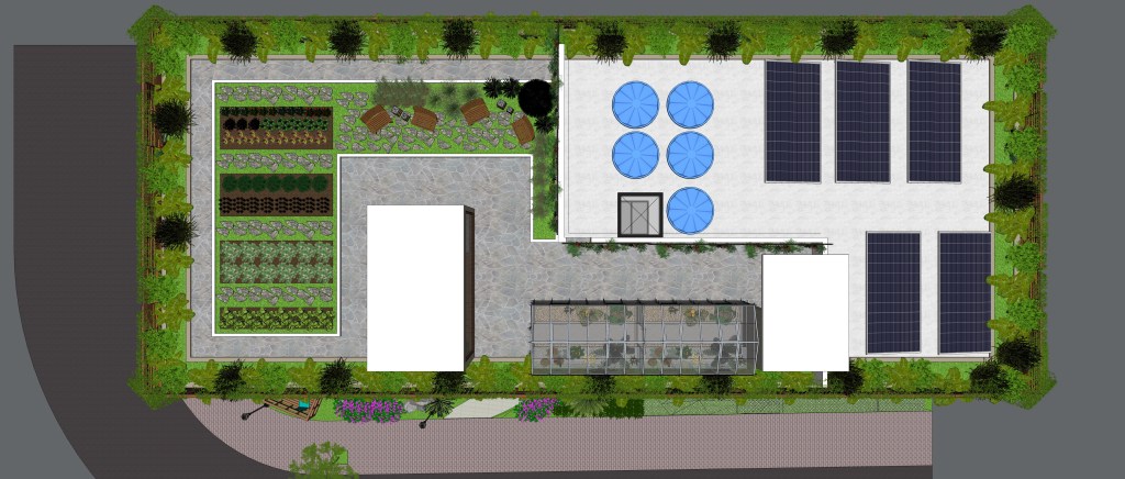 O Telhado pode ter com múltiplas funções: Lazer, Paisagismo Produtivo, Captação de Águas de Chuva, Conforto Térmico e Acustico, Captação de Energia Solar.