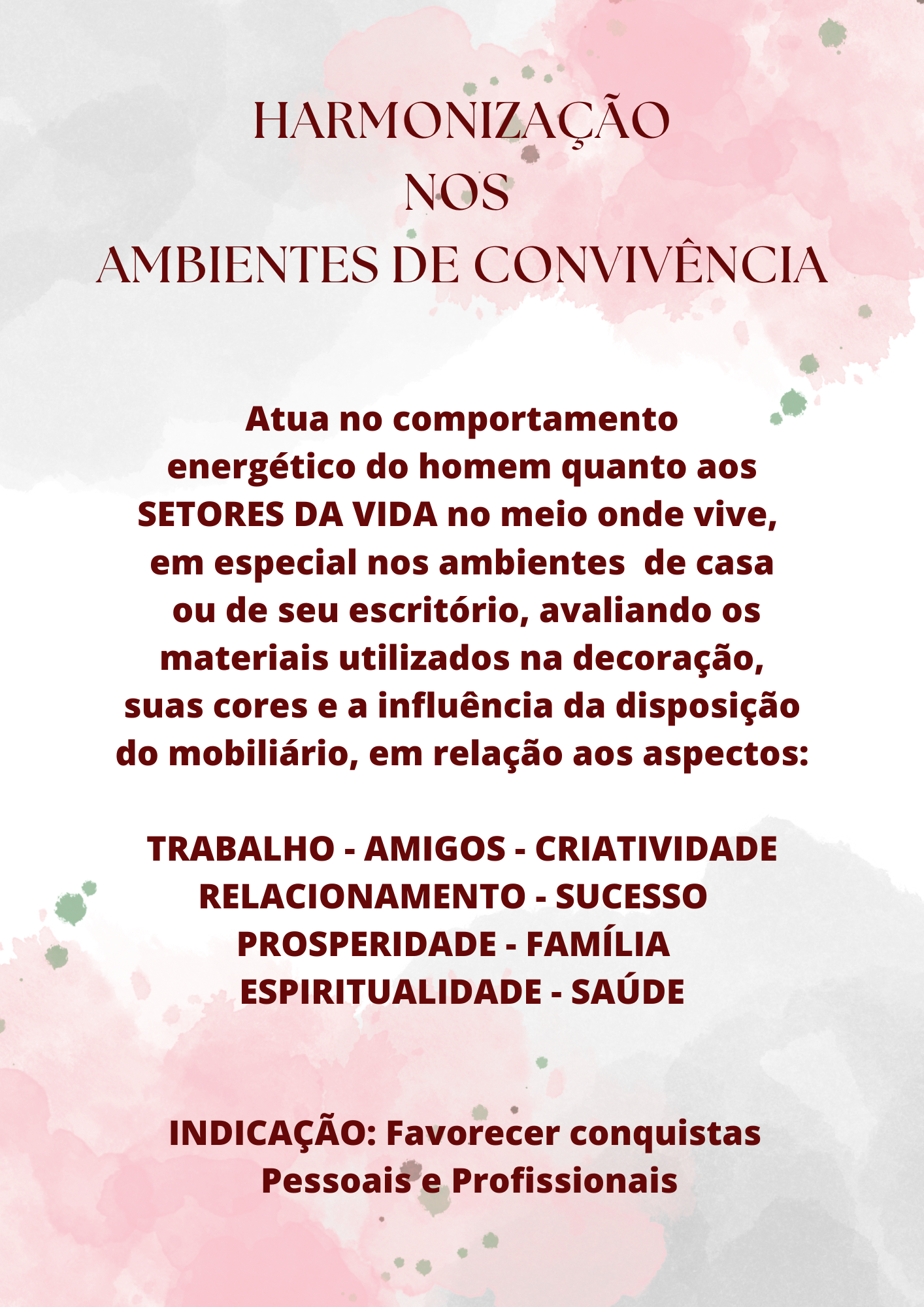 Inclui todos os parâmetros da Geobiologia para determinação do layout, ambientação, materiais, detalhes para instalações elétricas e hidráulicas, paisagismo, sustentabilidade, manutenção e produtos.