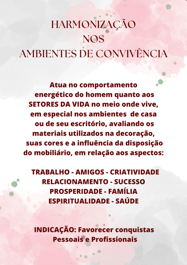 Consultoria e Prospecções em Geobiologia e Feng Shui, para harmonização de ambientes internos e externos, posicionamento e distribuição de layout, identificação com aparelhos de mensuração de possíveis interferências do solo ou construções vizinhas e orientação das soluções.