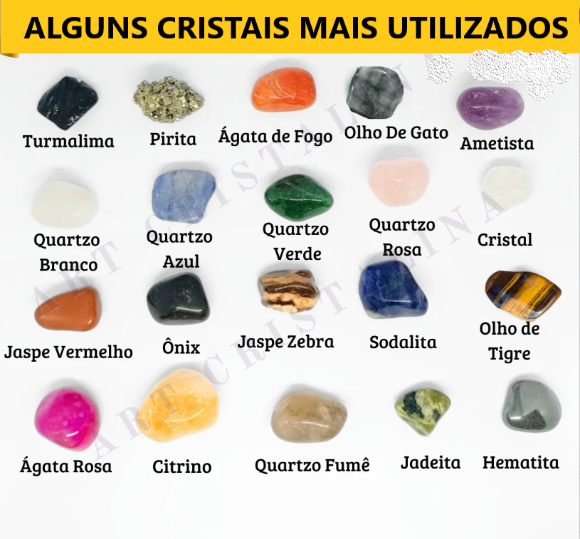 LIMPEZA E PROTEÇÃO: Turmalina negra, ônix, obsidiana floco de neve, ametista, quartzo branco, ágata, coral, madeira petrificada, âmbar, jade, olho de tigre
